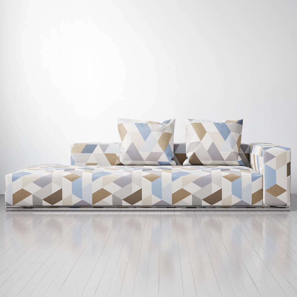 Indoor/outdoor upholsteries Delta and Tenet are woven at a vertical resource in Turkey from entirely recycled content and use yarns that are dyed through a waterless method to further minimize impact.