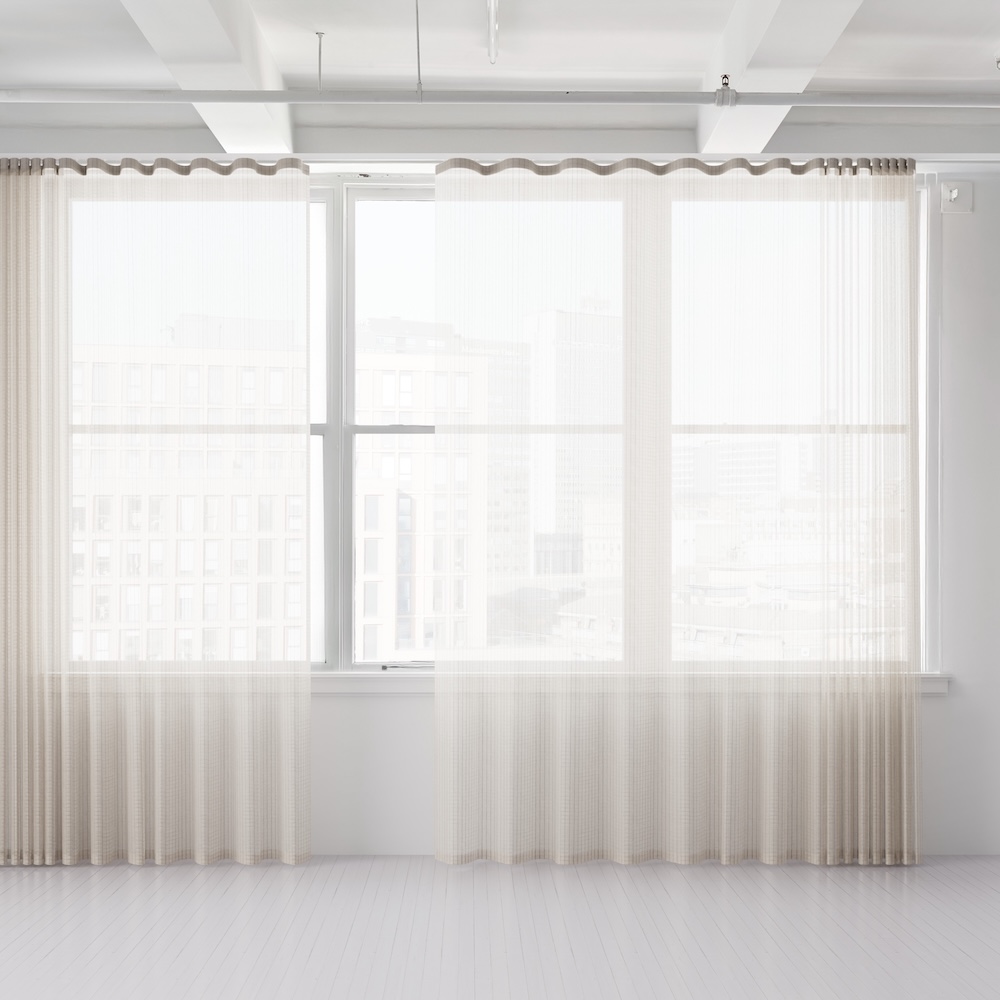 A subtly striated solid, Tenet’s heathered yarns and canvas-like hand offer the look and feel of natural materials.